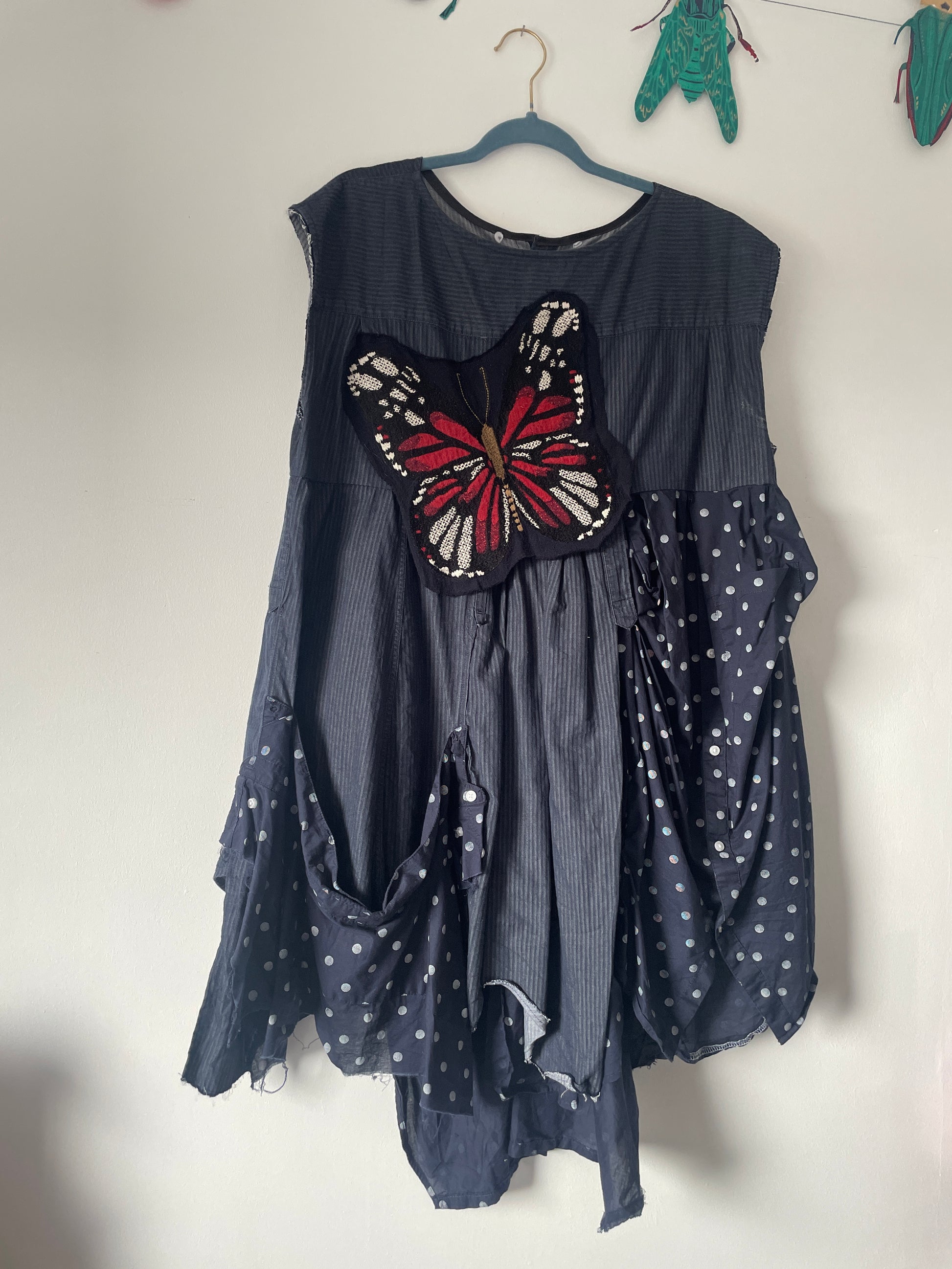 Butterfly Indigo Upcycled Dress/Top- Size Medium/Large