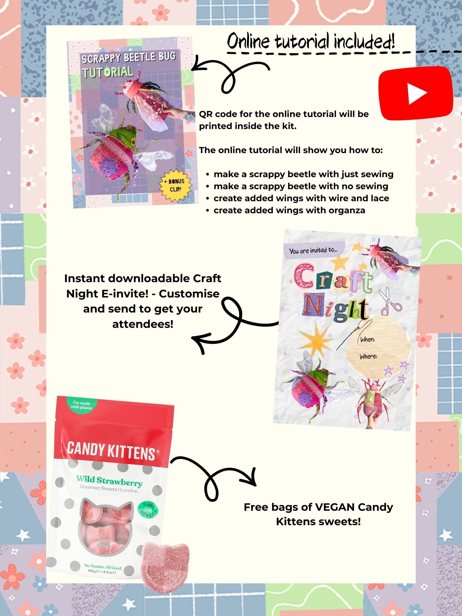This listing is for 2 fabric beetle kits. Please select how many people will be attending your craft party for the overall price!