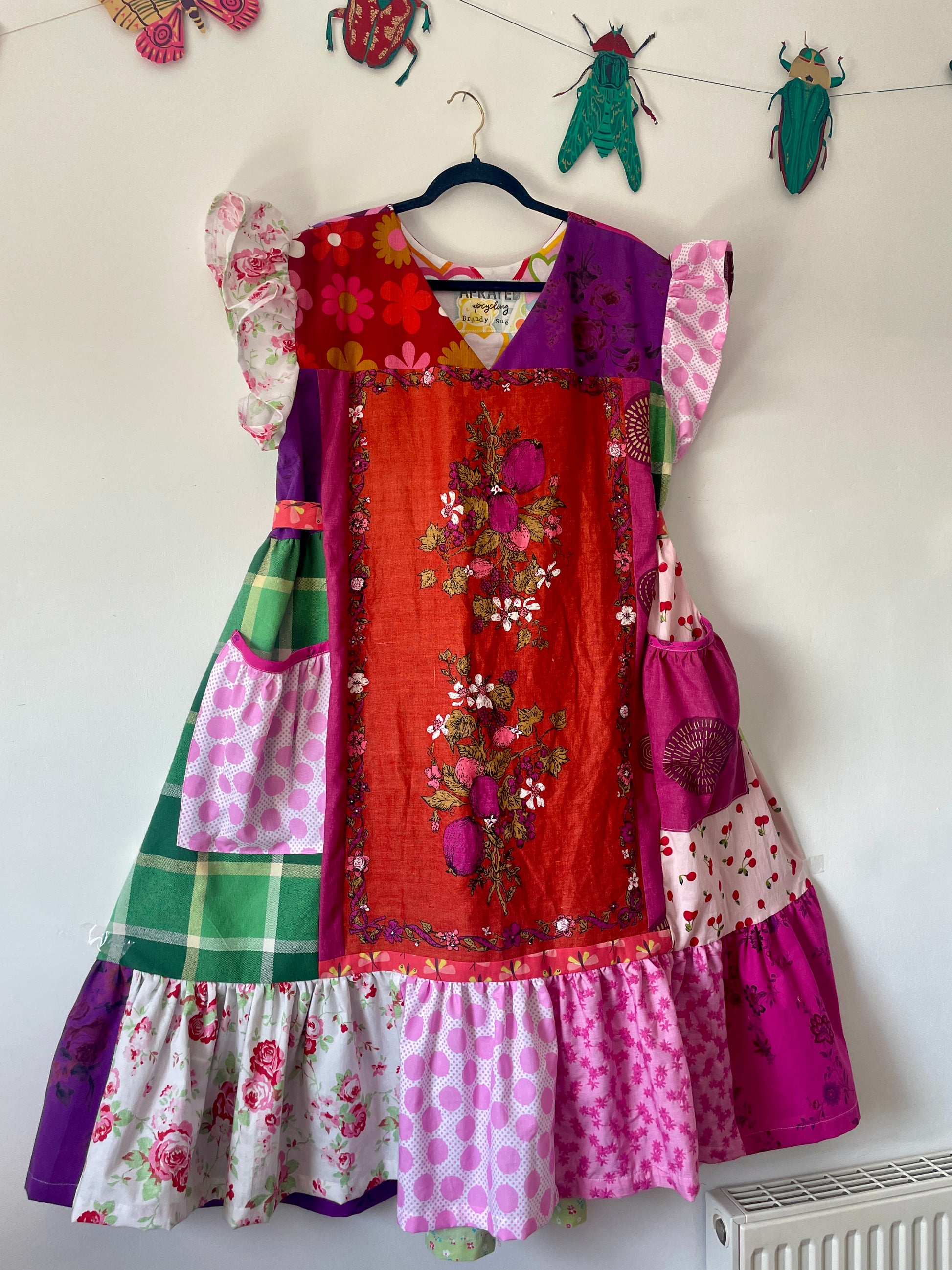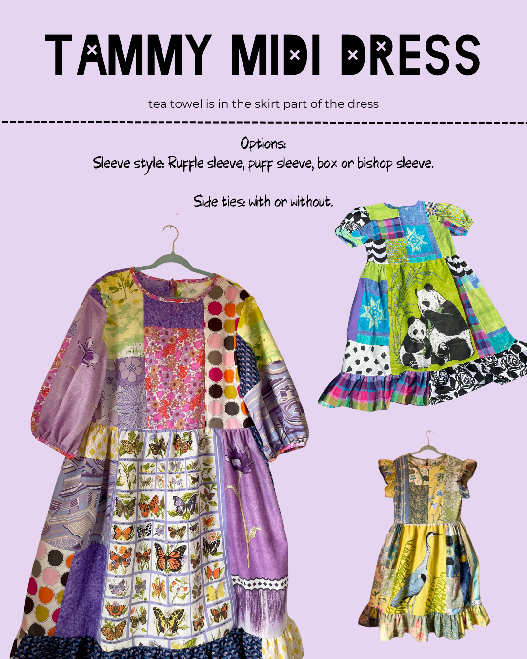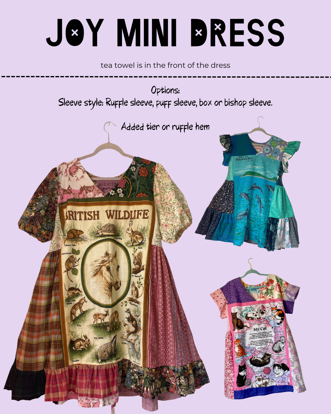 🌿 The Joy Mini Dress - the tea towel is featured at the front, has in seam pockets, an A-line shape with ties at the side.